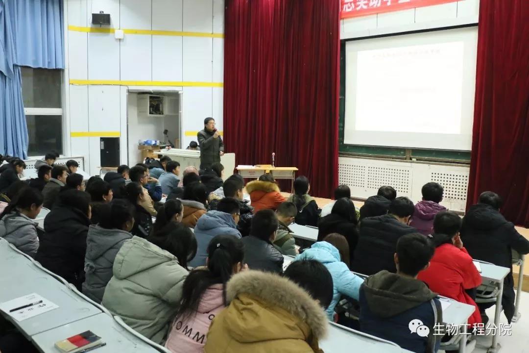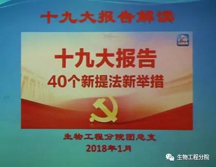 新年伊始,为深入实学习党的十九大精神,1月2日晚7点beat365团总支书记贺立虎在西台阶教室以“十九大报告40个新提法新举措”为题领学了十九大报告。生物分院学生党员、入党积极分子、学生干部、2017级团员青年共300余人聆听了这场报告。