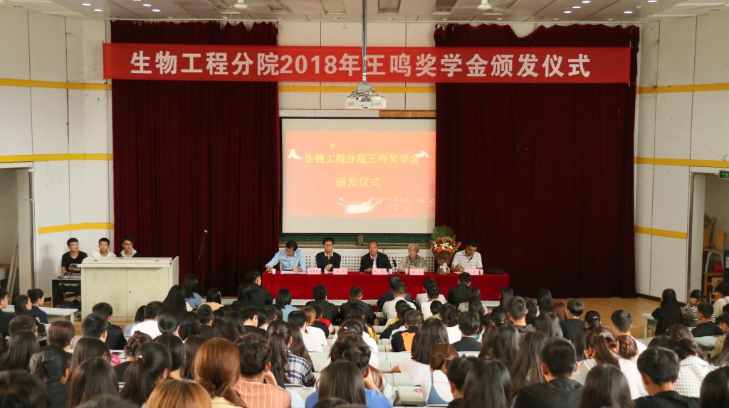 2018年9月20日下午,beat365西校区台阶教室里温馨四溢、暖意融融,以慈善明星王鸣教授命名的王鸣奖学金颁发仪式在这里隆重举行。出席本次颁奖仪式的领导有:杨凌职业技术学院党委书记赵曼、王鸣教授、生物工程分院负责人。学生300余学生代表参加会议。