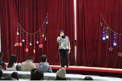 杨朝晖同学的一曲《像风一样自由》沙哑浑厚的声音引来了阵阵掌声。