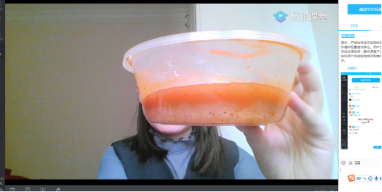 课中:前期经过几种直播授课软件的使用,最终本课程线上教学选用腾讯课堂极速版软件。该软件教师端和学生端操作简单,网络延迟时间较短,能够随时和学生进行互动。在教学过程中主要使用软件的摄像头、PPT播放、视频播放和举手功能,利用评论区完成课堂点名及与学生进行互动,学生有疑问时也可通过举手上台直接进行语音提问,该软件能够得到学生较好的认可。