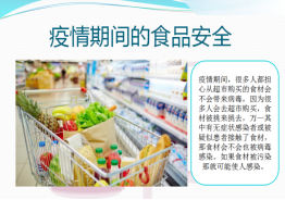 根据疫情特殊情况,依据食品安全五要点五,结合食品安全中生物性污染制作“疫情期间的食品安全”和“预防新型冠状病毒感染的肺炎健康知识”两个板块的内容,强调食品安全和预防重要性。