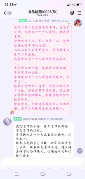 为了提高同学们的学习热情和学习效率,生物工程分院学生会学习部于4月27日通过线上组织开展了以“热爱学习,学会学习”为主题的班会。在这个特殊的时期里,同学们积极的通过线上交流来分享自己的学习经验。