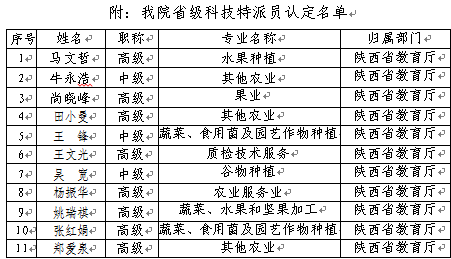 10月22日,中共陕西省委组织部、陕西省科学技术厅和陕西省人力资源和社会保障厅联合下发了《关于认定省级科技特派员的通知》陕科发[2020]23号文件。