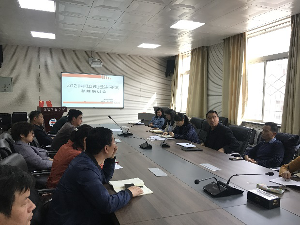 本年度单独招生考试工作是在学院教务处的统筹安排下,由分院组织开展考前培训和面试工作。生物工程分院高度重视,积极准备,认真谋划,专门成立考试工作领导小组,制定分院2021年单独招生考试面试工作方案,先后召开监考人员及志愿者笔试、面试考前培训会,对考试各项任务进行了详细安排。