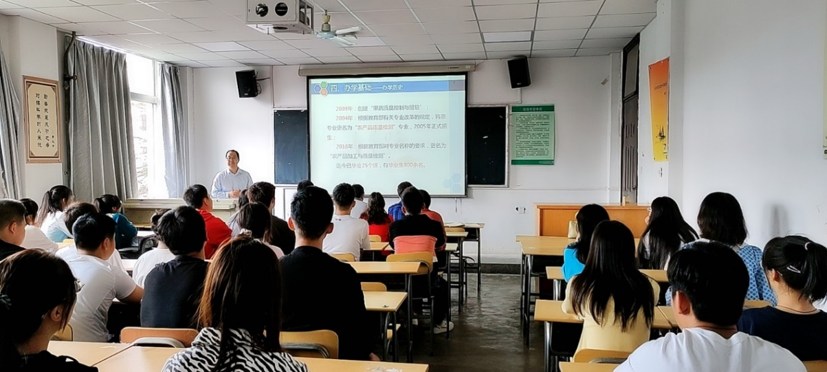 9月6日下午,质检教研室在林和楼344教室召开专业介绍会。会议由质检教研室副主任刘伟主持,教研室教师刘小宁、雷琼、李国秀、李劼、王文光、崔利辉、戚飞,产教融合处教师刘颖沙以及2021级农产品加工与质量检测专业、绿色食品生产技术专业全体新生参加了会议。