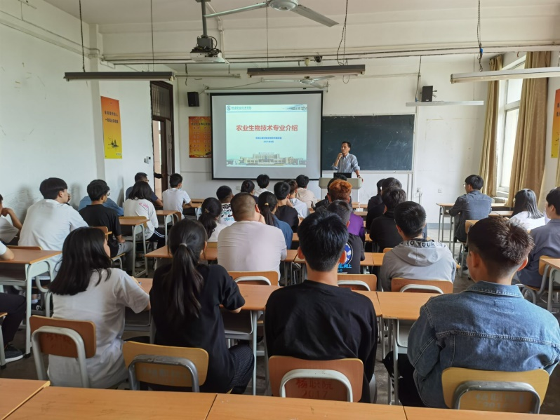 9月6日下午,农业生物技术专业2021级专业介绍会在林和楼308教室举行。会议由生物技术教研室主任、专业带头人周济铭教授主讲,王锋、冯帆等专业教师及2021级农业生物技术专业全体新生参加。