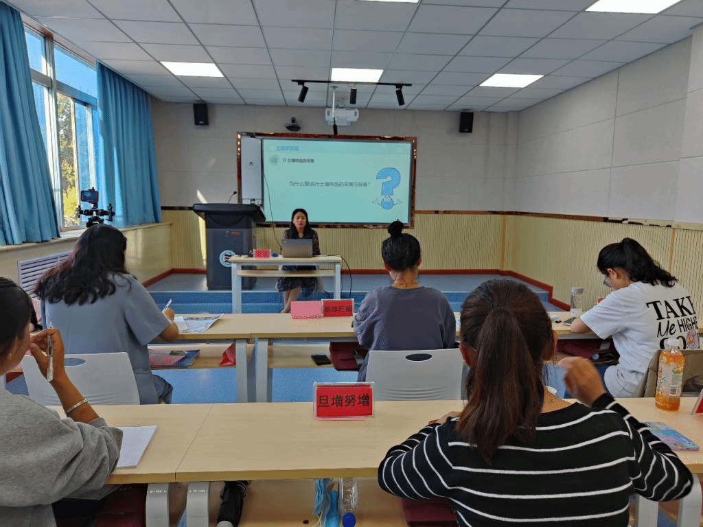 培训在北校区修院楼三楼智慧教室进行,采用线下课堂讲授形式,并同步进行教学过程直播,校外学员可以在线同步学习。上午培训以实验理论为主,内容主要涉及土壤样品的采集和制备、土壤含水量的测定、土壤有机质测定等六项内容。下午培训以实践操作为主,在老师的指导下学员掌握了土壤pH计、土壤养分速测仪等的使用方法。