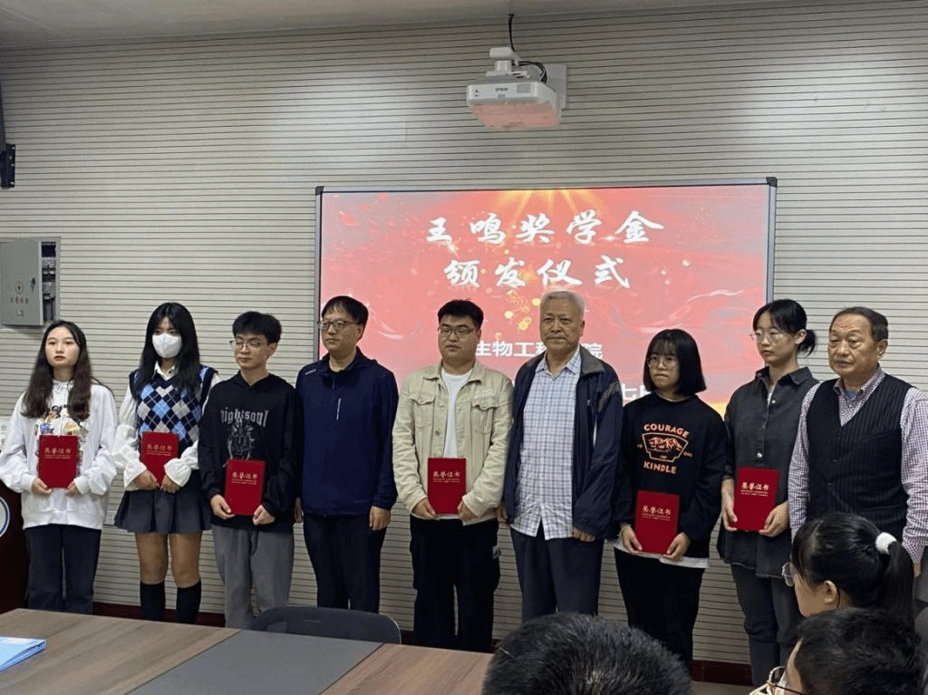 在全体师生一同观看过王鸣教授专访视频之后,生物工程分院党总支书记李岩宣读了本次王鸣奖学金获奖学生名单,杨凌示范区慈善协会会长刘怀省、副会长张建斌、生物工程分院党总支书记李岩为获奖学生颁发荣誉证书。