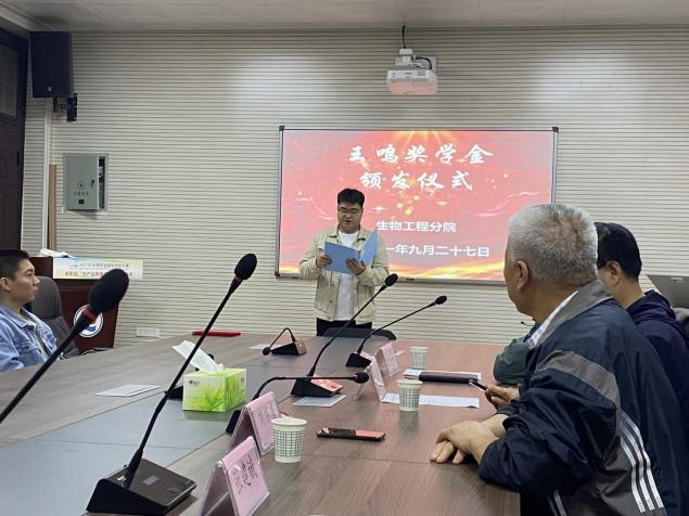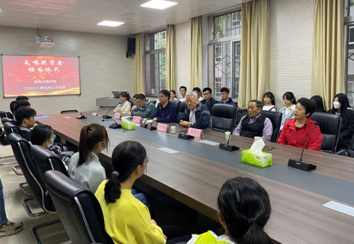 9月27日下午,生物工程分院举行了以慈善明星王鸣教授命名的“王鸣奖学金”颁发仪式。杨凌示范区慈善协会会长刘怀省、副会长张建斌、生物工程分院党总支书记李岩、学工办副主任贺立虎、获奖学生和2021级园艺技术专业50余名学生参加了颁发仪式。会议由生物工程分院学工办副主任贺立虎主持。