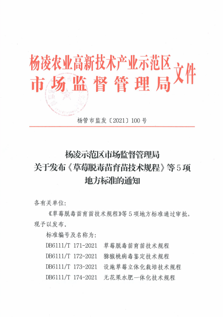 《设施草莓立体化栽培技术规程》由我校设施草莓创新团队起草完成,此标准从设施草莓立体栽培产地环境、栽培设施、栽培技术、病虫害防治等方面进行了技术规范,为杨凌示范区设施草莓立体栽培的标准化生产起到了指导作用。