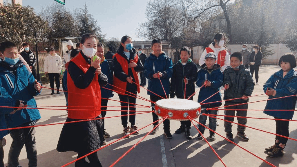 接下来,由何欢老师、贺立虎老师为小朋友开展团体素质拓展活动,志愿者带领小朋友一起进行击鼓颠球、无敌风火轮、趣味猜猜猜等活动,小朋友们渐渐的不再羞涩、胆怯,积极融入到活动中去,有小朋友说道:“这个活动真有意思,我们以前从来没有这样玩过。”