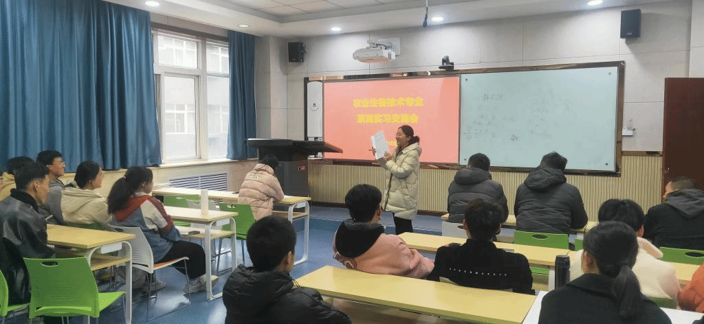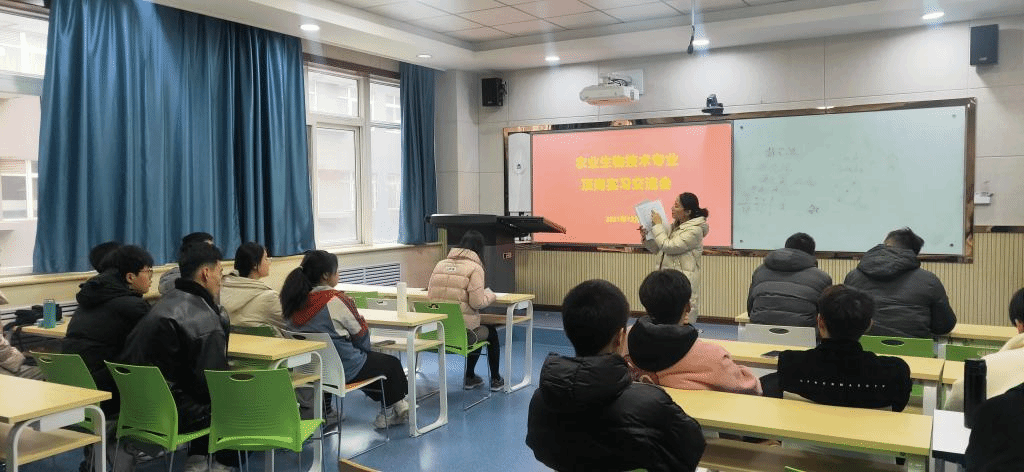 为进一步做好毕业生顶岗实习工作,引导学生做好顶岗实习前的各项应对准备,生技教研室于12月13日下午在乐农楼A305教室召开2022届毕业生顶岗实习动员大会。会议由生技教研室副主任杜璨主持,生技19067班全体学生及实习指导教师王锋、冯帆参加会议。