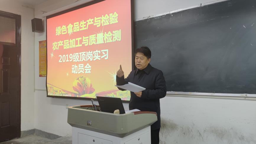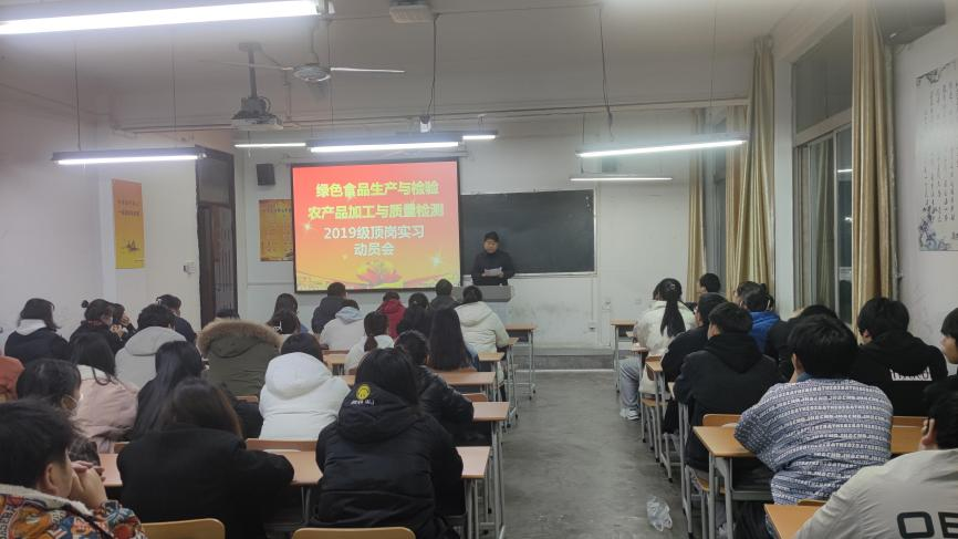 为引导学生做好顶岗实习前的各项准备工作,确保顶岗实习工作顺利进行,12月13日晚,质检教研室召开了2019级毕业生顶岗实习动员大会,绿色食品生产与检验、农产品加工与质量检测专业全体毕业生参加了动员大会。