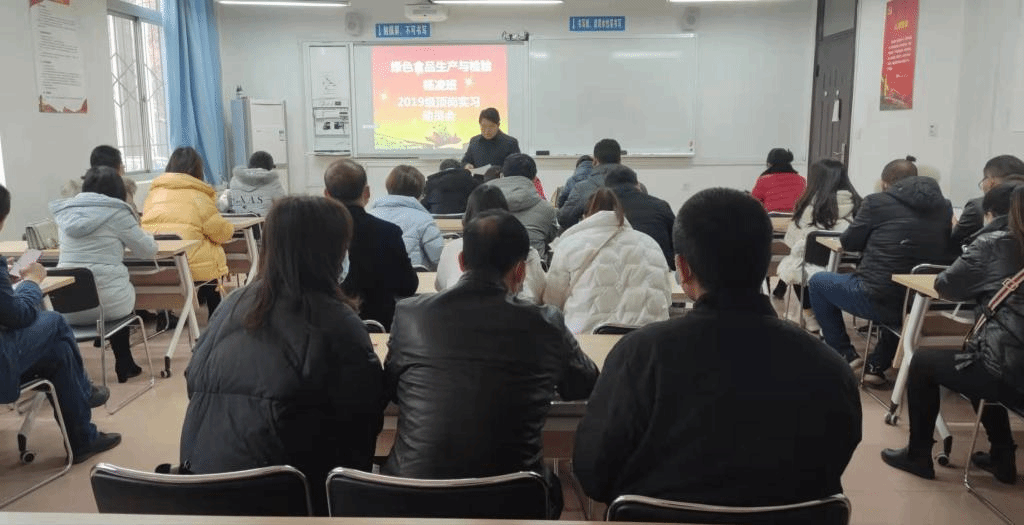 12月16日上午9点,在林和楼136教室召开了2019级绿色食品生产与检验杨凌班的顶岗实习动员会,质检教研室全体教师和杨凌班的全体学员参加。