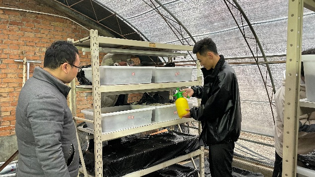 工作室的老师带领学生来到食用菌春秋大棚种植区,在王锋老师的讲解和指导下,学生对羊肚菌的生长习性和栽培要点具有一定的了解,切身参与到羊肚菌种植管理实践中。教育实践活动要切实做到知行合一。只有把理论学深弄懂,行动才能自觉持久,只有行动落实到位,对理论的领悟才能更深入。