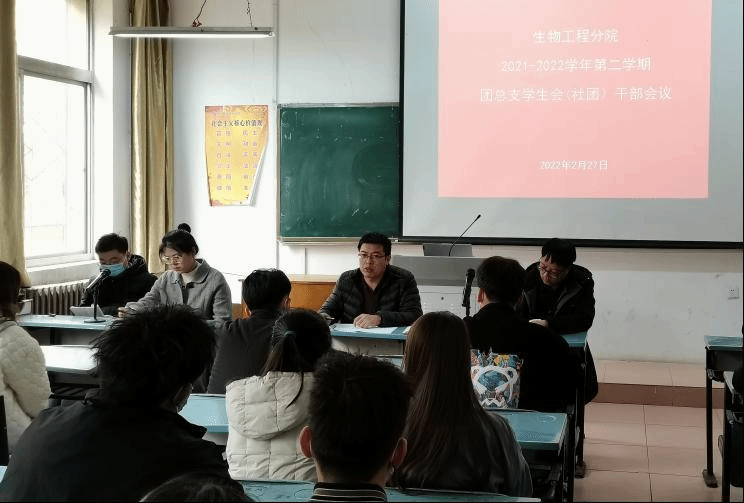 2月27日,beat365在线唯一官网在林和楼146教室召开2021-2022学年第二学期学生干部会议,党总支书记李岩、分管辅导员、团总支学生会及社团干部、各班班长、团支部书记参会,学工办副主任贺立虎主持会议。
