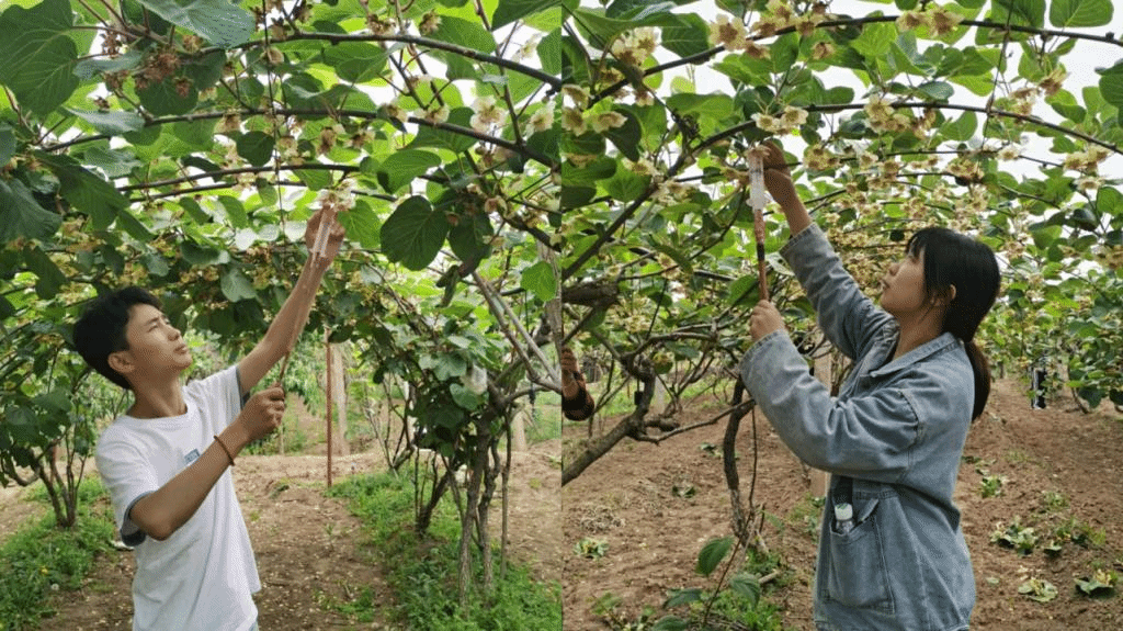 五泉镇椒生村种植猕猴桃800多亩,是学院和杨陵区“区校一体”服务乡村振兴的示范点,亢菊侠老师负责椒生村的猕猴桃产业提升和人才培养。五月初是猕猴桃的人工授粉时间,农户们需要专业的授粉知识和技巧。亢菊侠老师带领植保20037班学生给农户讲解了猕猴桃人工授粉的原理,并强调了授粉时间、授粉方法等应注意的一些事项,同时现场示范了授粉技术。随后,学生们分组送爱心,协助一些缺少劳动力的年老农户进行授粉工作。中午,学生们前往农户家里,自己动手做午饭,和农户们一起吃农家饭。下午四点多,随着一阵濛濛细雨的到来,结束了一天的工作。
