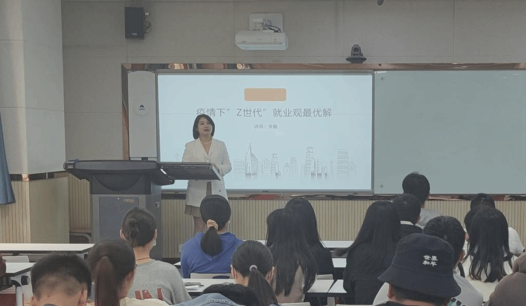 关敏总经理主要从就业数据解析、应届毕业生现状、行业分类、人力资源现状和就业观最优解等方面帮同学们分析了当前疫情影响下企业与毕业生的迫切需求、行业需求与国家政策的导向,以及如何在求职过程中放大自己的优势。关敏表示:在疫情影响的大背景下,企业更倾向于招聘“全才”,即在招聘时不仅着眼于应聘者的专业技能,更看重应聘者协同办公、书面作业方面的能力,同学们应该增强自己全方面的能力,在应聘时勇敢展示自己。
