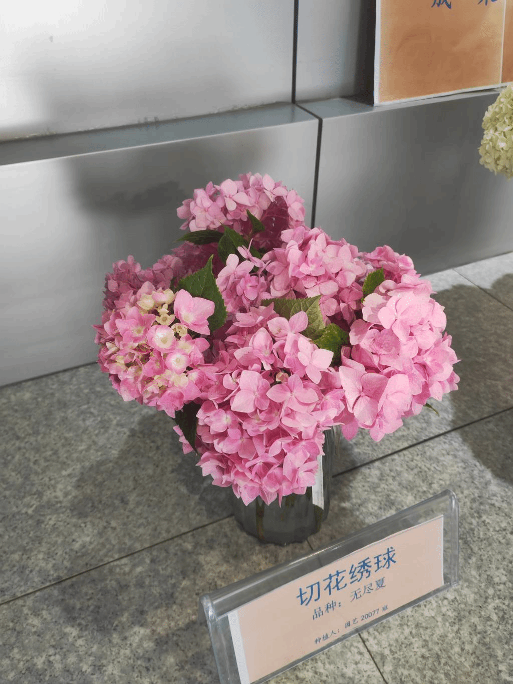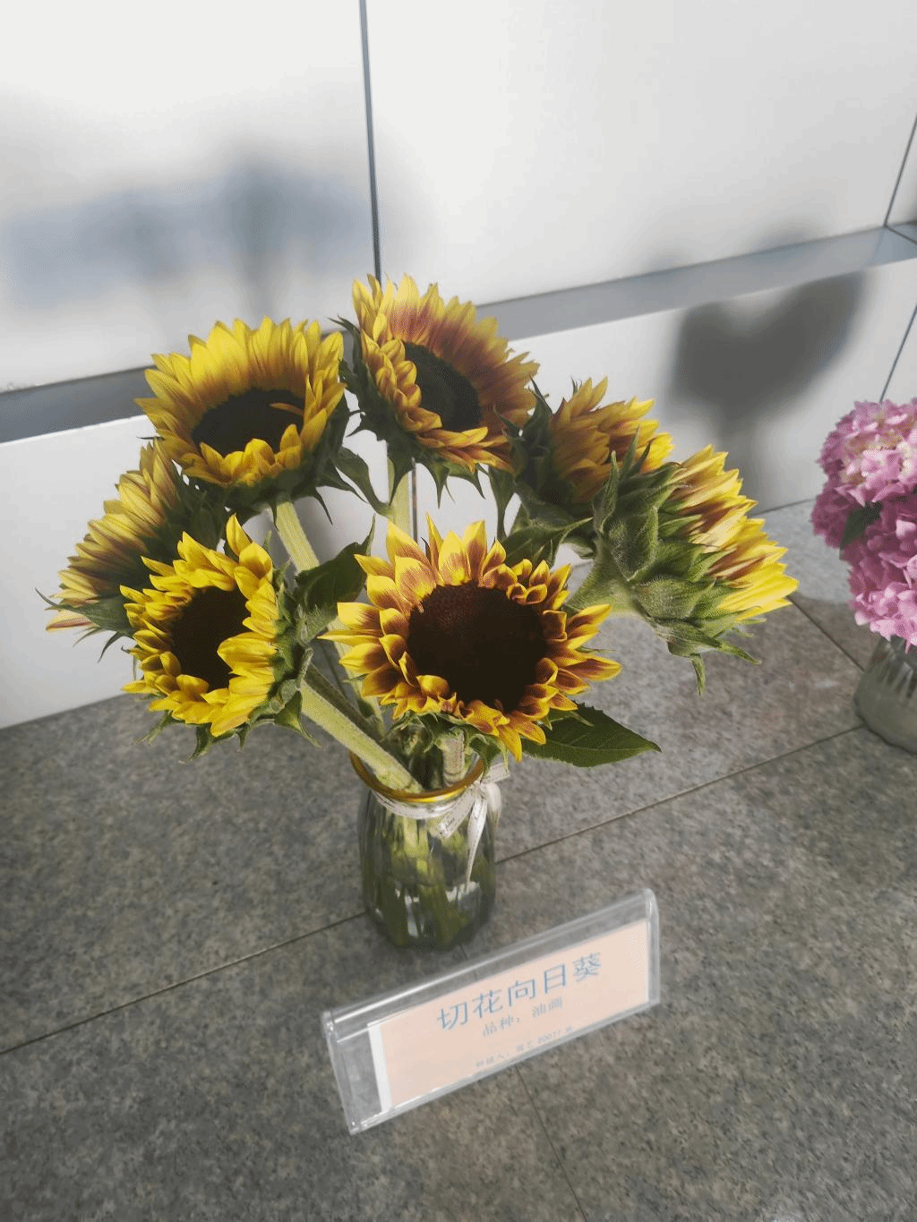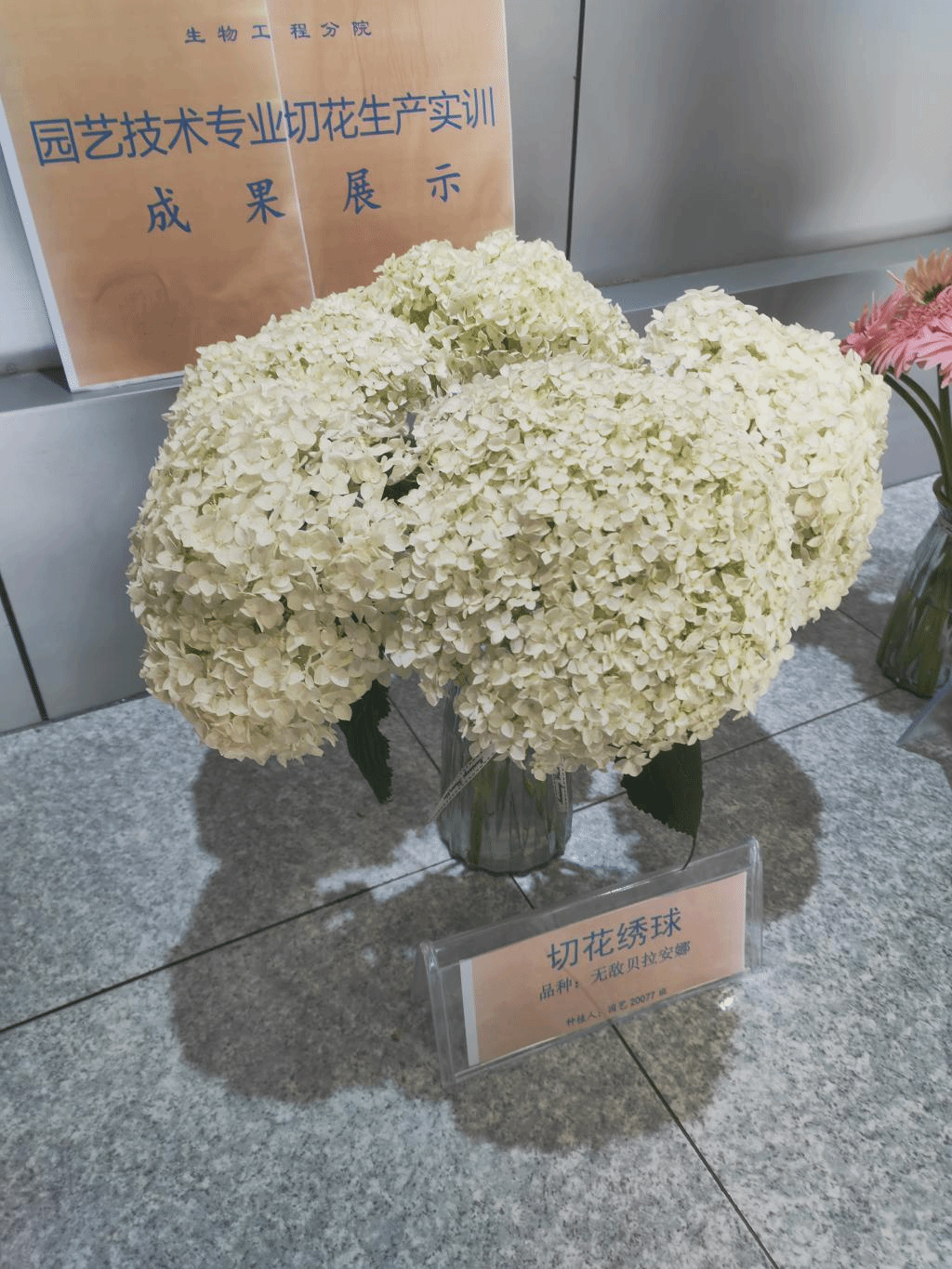本次活动主要为鲜切花生产成果展示,展示成果共11组,含向日葵、绣球、非洲菊、百合等,向日葵品种有文森特2号、文森特鲜橙色、文森特清新、油画4种,绣球品种有无尽夏、无敌贝拉安娜2种,非洲菊品种玲珑、鸿运、雪桔3种,百合品种有穿梭、眼线2种。