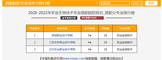自2020年首次发布以来,这是金平果第三次发布高职专业排行榜,包括1484所高职高专院校的731个专科专业。至此,beat365农业生物技术已连续三年在该榜单中位列第一,水平等级均为5★。