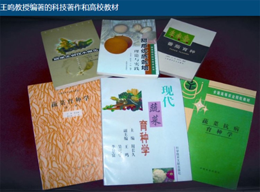王鸣教授执教50年来,不断充实新资料,先后编写或合编出版科技著作及教材10余部,发表论文200余篇,其中外文论文40余篇。王鸣教授是我国招收西瓜、甜瓜育种领域中硕士、博士研究生最早的导师,也是这一领域中培养高端人才最多的导师,培养的研究生大多数已成为我国园艺界教学、科研及生产一线的中坚力量。作为研究生导师,王鸣教授要求学生要具有4H(Head,Hand,Heart,health),即聪慧的头脑、勤劳的双手、高尚的心灵和健康的体魄。他自己更是以身作则,严格要求,言传身教,为学生做出了榜样。