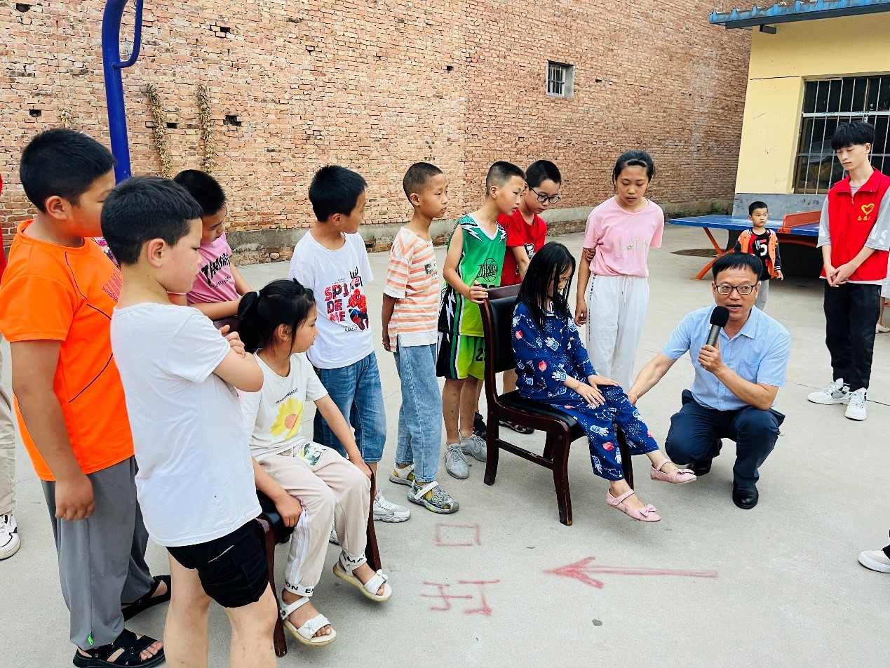 学院党总支书记、国家二级心理咨询师李岩为孩子们带来心理团体辅导,在与孩子们做团辅游戏过程中帮助孩子提高自信、改善自我、团结互助,以适应自身成长过程。