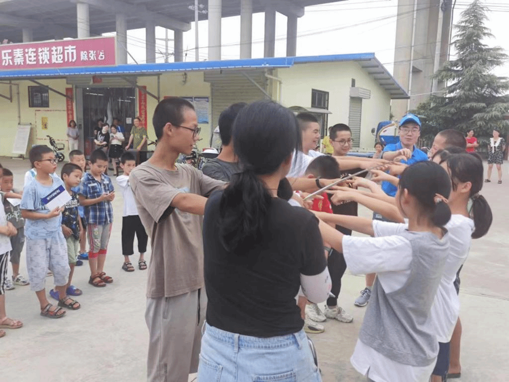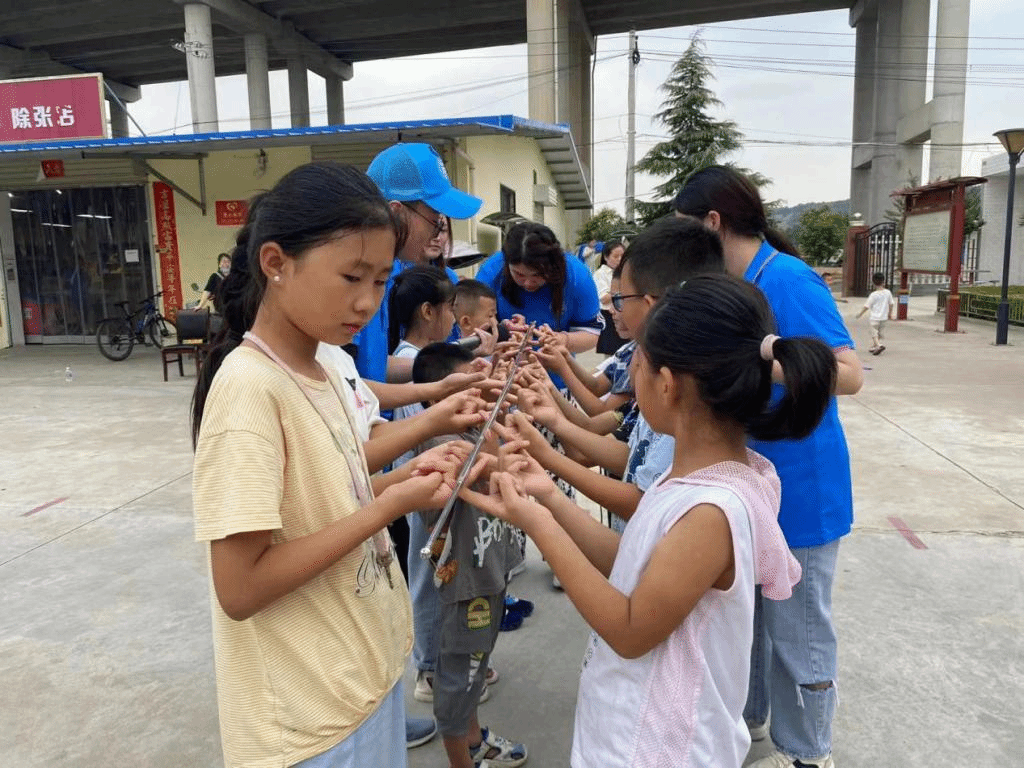 随后,实践团队与孩子们一起进行团体素质拓展活动,活动分为三个部分:齐眉棍、手指抬人、自信手语操。活动中,团队成员与在场留守儿童和困境学生积极互动,孩子们一片欢声笑语,每场团体活动后,活动负责人还会认真给大家总结,同时告诉大家有何启发。通过团体辅导,不仅帮助在场留守儿童和困境学生明白团队合作的重要性,同时也告诉他们前方的路不是一帆风顺,是曲折的、是泥泞的,面对困难不要退缩,要直面面对。