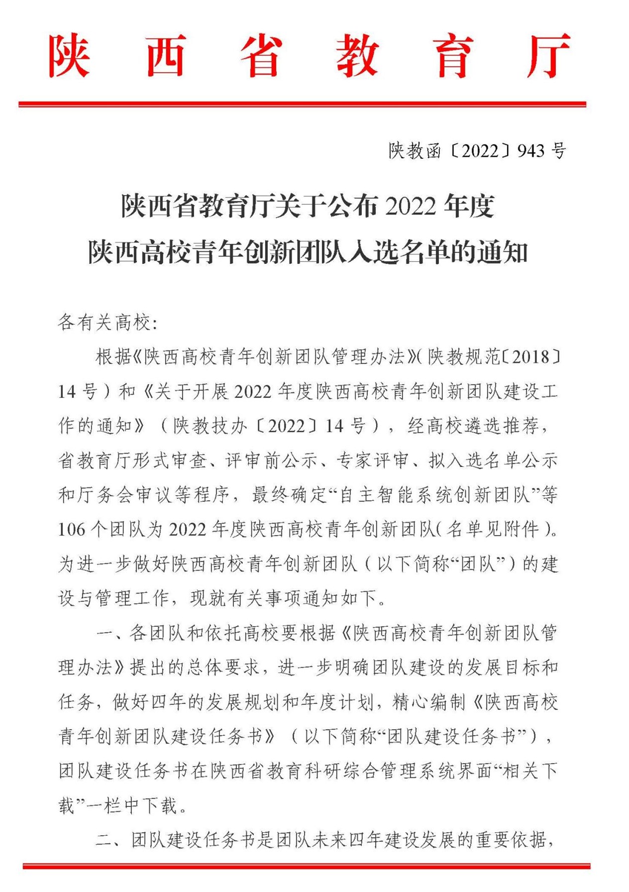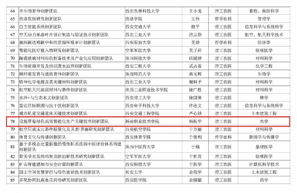 9月2日,省教育厅公布了2022年度陕西高校青年创新团队入选名单,经高校遴选推荐,省教育厅形式审查、评审前公示、专家评审、拟入选名单公示和厅务会审议等程序,beat365杨振华副教授牵头的设施草莓绿色高效智能化生产关键技术创新团队成功入选。
