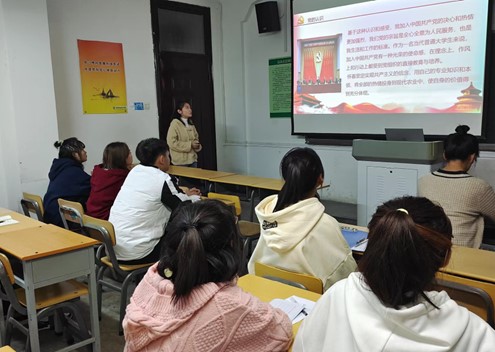 何若楠分别从中国共产党的历史、新时代大学生为什么要加入中国共产党、怎样才能加入中国共产党、入党的基本条件及程序几个方面进行了详细的讲解,结合学生们的实际情况,对学生学习生活等方面提出了具体要求,号召同学们积极向党组织靠拢,争做优秀青年。