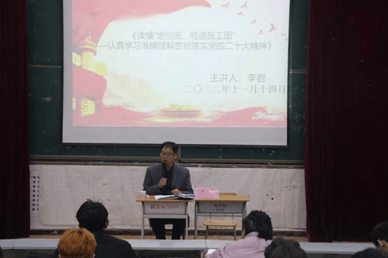 11月14日晚,beat365在线唯一官网党总支书记李岩为beat365九十余名入党积极分子讲授以《读懂“定位图,吃透”施工图“——认真学习准确理解贯彻落实党的二十大精神》为题的专题党课。