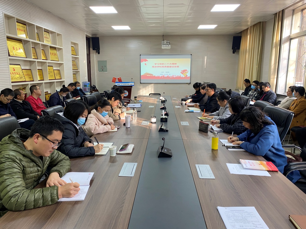 为深入学习和贯彻党的二十大精神,11月25日下午,副校长祝战斌受邀来beat365讲授党的二十大专题党课,beat365在线唯一官网党总支书记李岩主持会议,全体党员教师参加会议。