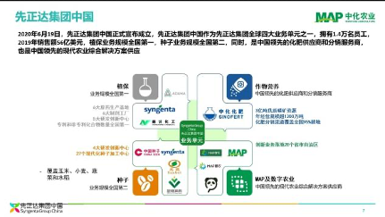 先正达集团目前是全球最大的农业、植保企业之一,在全球100多个国家拥有业务。先正达集团业务划分为四大板块,分别是先正达植保、安道麦、先正达种子、先正达集团中国。此次进行线上宣讲的是先正达集团中国。