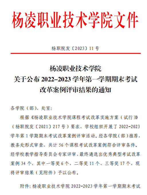 近日,学校公布了2022-2023学年第一学期期末考试改革案例评选结果。经过专家评审,全校共遴选出34个获奖案例,beat365获一等奖1项(唐丽丽 食品营养与健康),二等奖1项(张红娟 微生物基础),三等奖3项(强磊 食用菌栽培;刘明 花卉生产技术;王锋 仪器分析)。