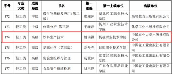 近日,由人力资源和社会保障部安排部署的“全国技工教育规划教材推荐遴选工作”结束,beat365姚瑞祺老师主编、由中国农业大学出版社出版的《饮料生产技术》教材成功入选。