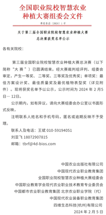 近日,第三届全国职业院校智慧农业种植大赛总决赛圆满落幕。beat365园艺技术专任教师缑一杰、刘慧指导园艺22083班学生任国和唐友鹏组队积极参赛,在“智慧叶菜种植大赛”总决赛中荣获三等奖。