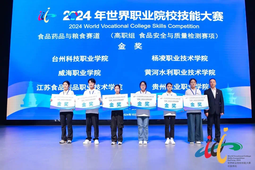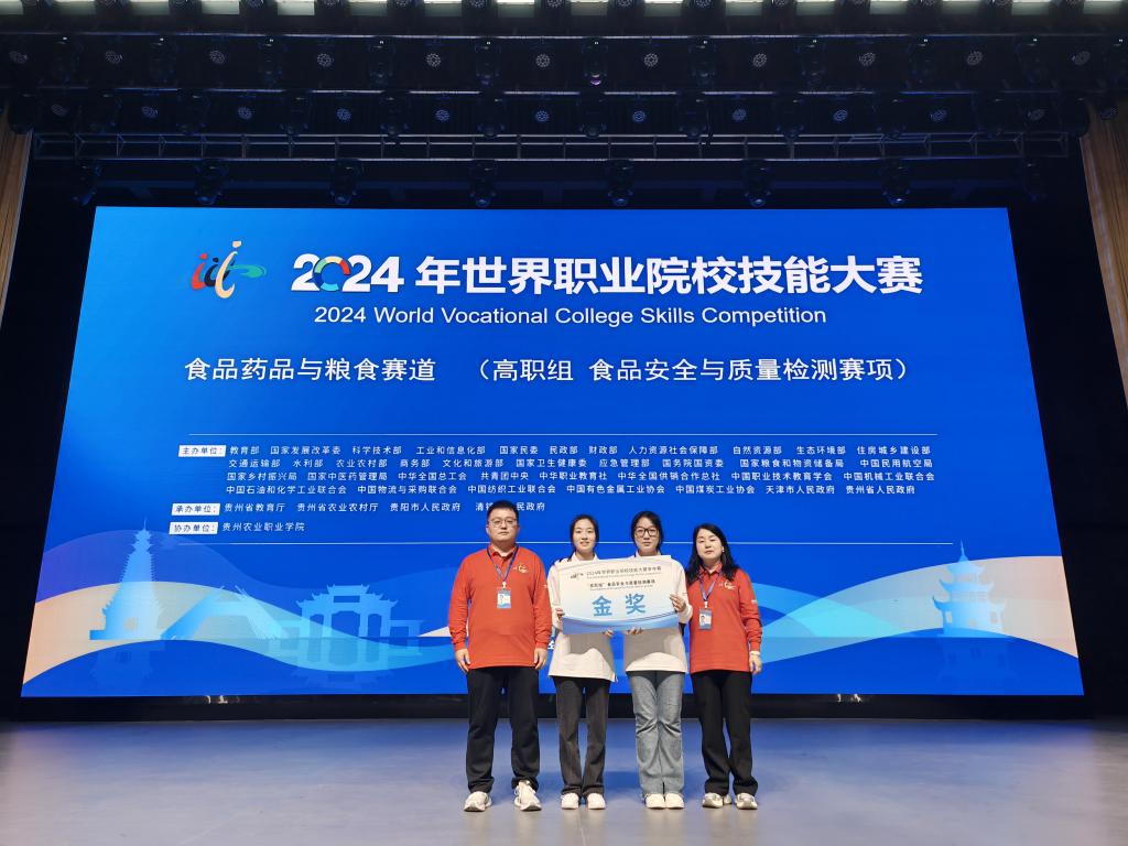 10月25日至30日,2024年世界职业院校技能大赛高职组食品药品与粮食赛道“食品安全与质量检测”赛项争夺赛在贵州农业职业学院成功举办。beat365张红娟、崔利辉两位老师指导的杜晶晶、刘蕊华2名同学,以卓越的现场发挥和扎实的专业技能操作勇夺金奖,位列小组第一名。