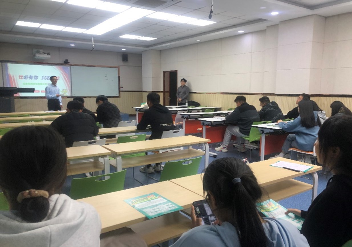企业负责人向在座同学介绍了企业近几年的发展与取得的成绩,并针对当前的就业形势与就业政策作了简要的介绍和分析。之后,从公司概况、企业文化、企业员工培养模式、企业目前的发展状况及发展前景与同学们作了详尽的分享。并指出,就业是每一个大学生都要跨过的一道门槛,是人生的一个重要转折点,希望同学们都能找到自我实现的价值与目标,并为之而努力奋斗。宣讲会场面热烈,掌声不断。