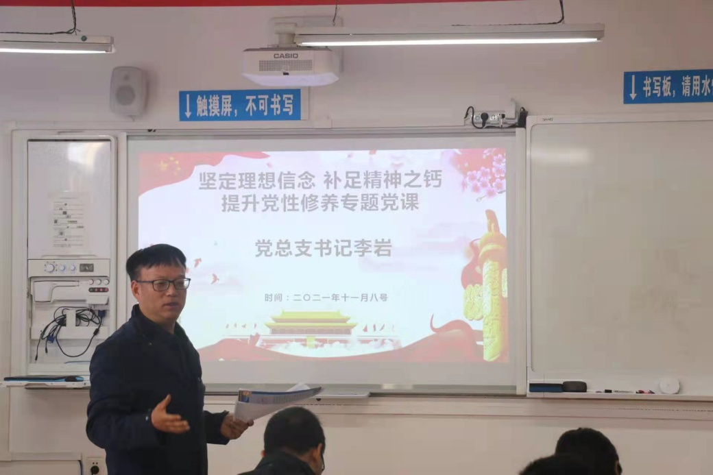 11月8日下午,质检食品党支部所有教职工、学生党员齐聚一堂,在林和楼136党建大讲堂上了一堂题为“坚定理想信念,筑牢信仰之基,补足精神之钙,把稳思想之舵,提升党性修养”的党课。此次党课由生物工程分院党总支书记李岩主讲。