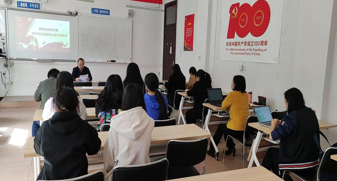 按照《杨职院党办发〔2022〕2号关于2021年度党支部组织生活会和民主评议党员工作的通知》,依据beat365在线唯一官网2021年度组织生活会和民主评议党员工作有关事项通知要求,质检食品党支部于2022年3月7日下午在林和楼136召开了线上线下相结合的组织生活会,全体党员参加了本次活动。
