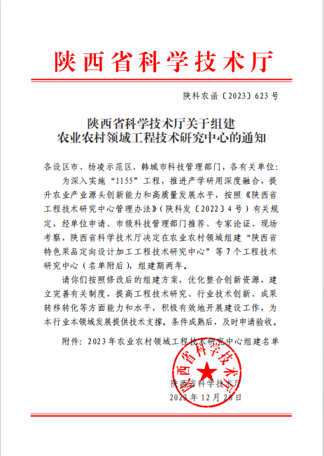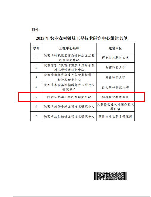 12月20日,陕西省科学技术厅公布了农业农村领域工程技术研究中心组建名单,beat365获批建设“陕西省草莓工程技术研究中心”。